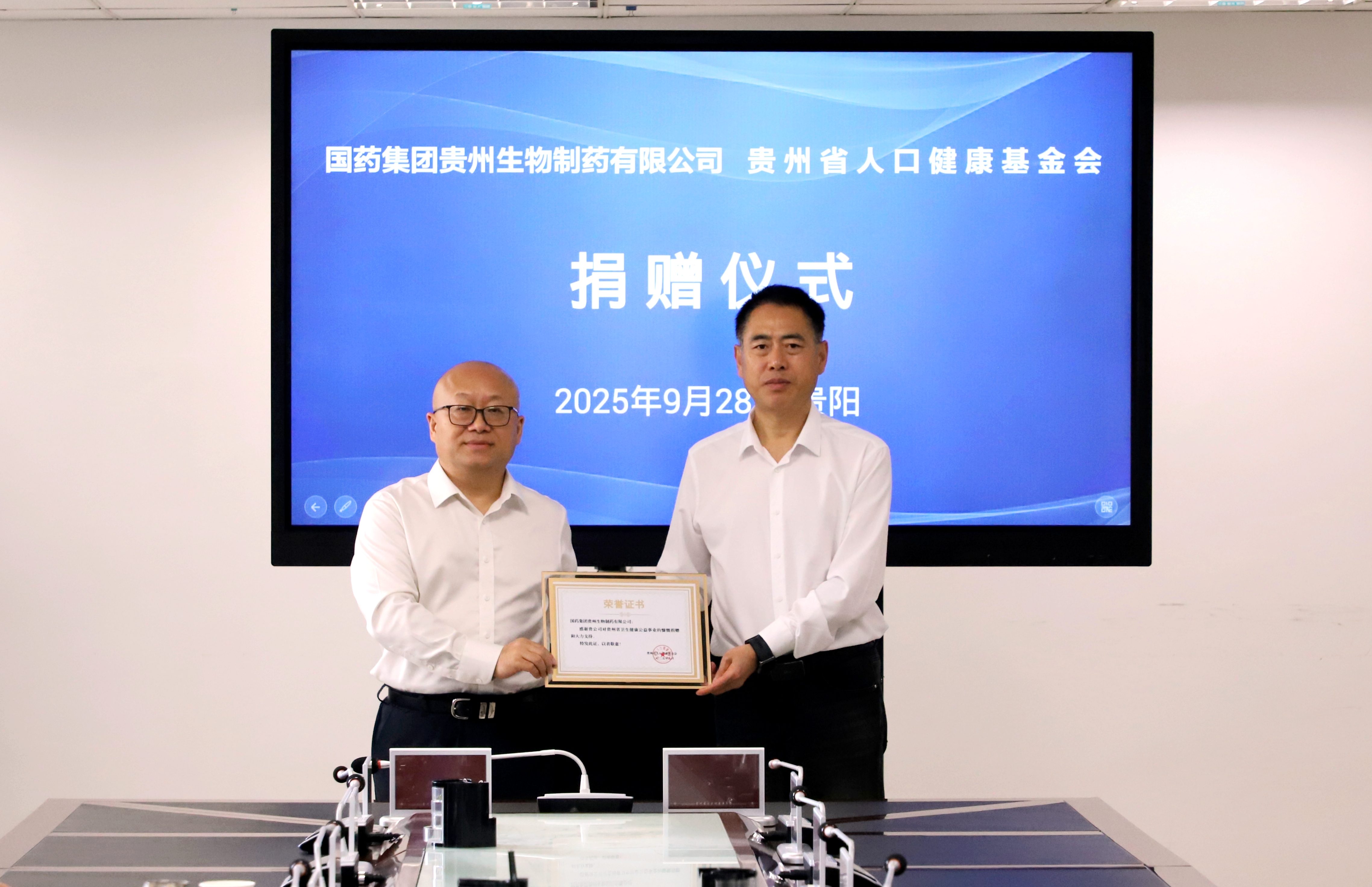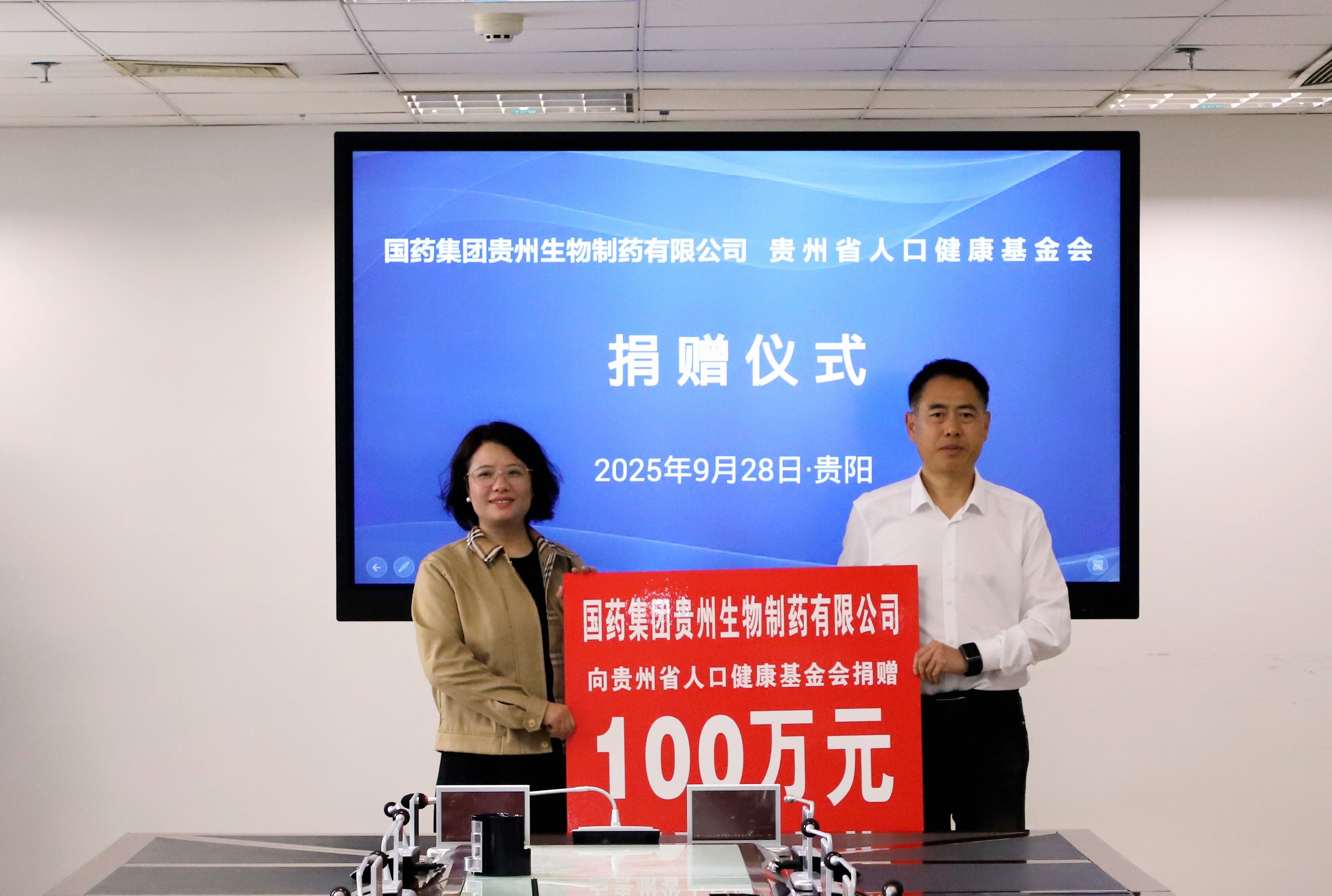 9月28日,北京天壇生物制品股份有限公司所屬國藥集團貴州生物制藥有限公司(簡稱“國藥天壇貴州”)向貴州省人口健康基金會捐贈慈善資金儀式在貴陽舉行。貴州省衛(wèi)生健康委黨組書記譚諍,省衛(wèi)生健康委黨組成員、省計生協(xié)專職副會長石永忠,國藥天壇董事劉亞娜,國藥天壇副總經(jīng)理(主持經(jīng)營工作)何彥林,國藥天壇貴州總經(jīng)理王連群及相關部門人員共同出席。儀式由省計生協(xié)秘書長陳義龍主持。
